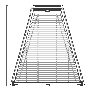 This ceiling window blind is the ceiling window version of P1635, with additional steel wire tension cords to keep it taut even in a horizontal position. This ceiling blind fits trapezoid windows with two inward slanted lateral sides. Rails on all four sides are mounted with ceiling fixing clips; an additional upper rail is adjustable for operating the blind from the top (narrow side).