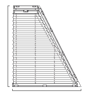 This blind fits trapezoid windows with one slanted lateral side. Rails on three sides are mounted with fixing clips; an additional upper blind rail is adjustable for operating the blind from the top (narrow side). The blind can be made with the slope on either the left or right hand side.