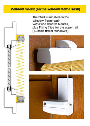 - Face Bracket Mounts – attach directly to the timber window frame sash. (Stationary upper rails are attached by additional Fixing Clips).