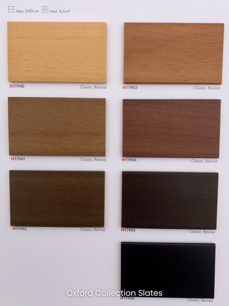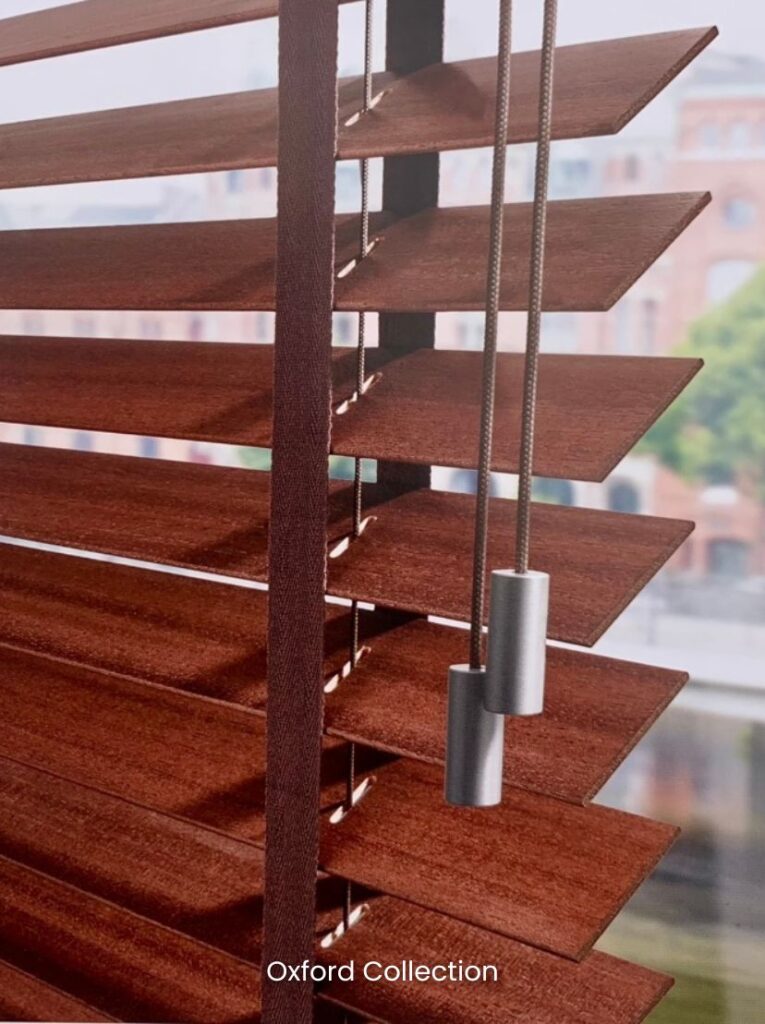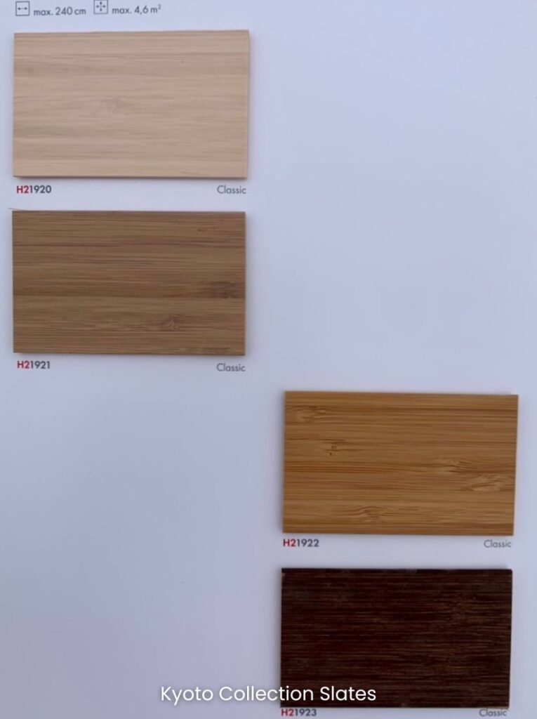 Our six high-quality hardwood venetian ranges. The Kyoto, Nola, Oxford, Portland, Copenhagen and Cape Town charts, each with multiple swatches. are made of strong but light weight hardwood or bamboo.
