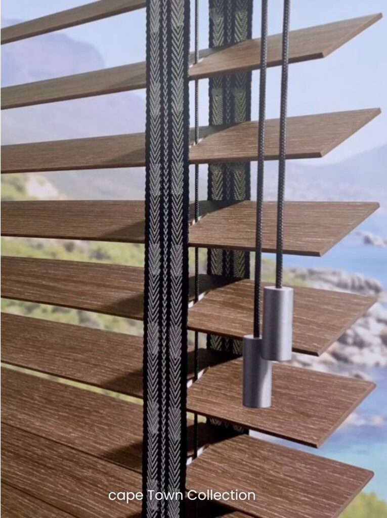 Wood Venetians with personality – customize your Venetian blind to your style with the help of lots of design alternatives, adapt our Venetian blinds to suit your individual needs and interiors, choose your style of ladder tapes (‘tapes’ are strips of cotton that run vertically down the blind where the internal string are, positioned to hide the ‘rigging’ of your blind) colour-coordinated or contrasting with the Venetian slats. Preventing direct sunlight from entering.